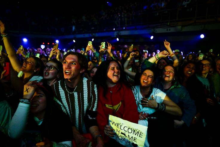 Opening with “All My Love,” fans immediately flashed “Welcome Home Noah” signs in the air, excited to have one of New England’s—and the world’s—favorite singer-songwriters back in his stomping grounds. Kahan, originally from Strafford, Vermont, and having lived in Watertown, broke through with his 2022 album “Stick Season.”